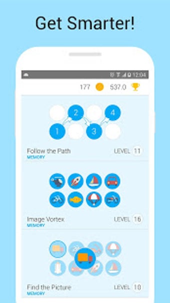 ألعاب الذاكرة: تدريب العقل هي مجموعة من 21 لعبة منطقية مصممة لتحسين الذاكرة والانتباه والتركيز الخاص بك. الألعاب سهلة الفهم ويمكن للأطفال الصغار حتى أن يلعبوها. يمكنك تدريب ذاكرتك بدون اتصال بالإنترنت، مما يجعلها طريقة رائعة لممارسة عقلك أثناء التنقل. كل ما تحتاجه هو 2-5 دقائق في اليوم لرؤية تحسينات.