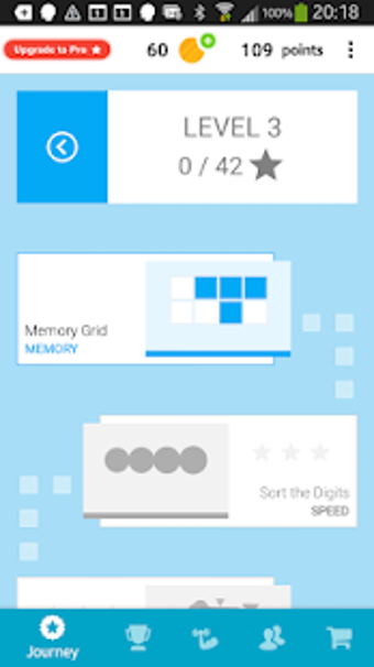 تتراوح الألعاب من السهل إلى الصعب وتشمل شبكة الذاكرة، شبكة الدوران، الذاكرة السداسية، من هو الجديد؟، عد الكل، اتبع المسار، الدوامة الصورة، واصطيادهم، وغيرها. اللعبة الأكثر مباشرة، شبكة الذاكرة، تتطلب من اللاعبين حفظ مواقع الخلايا الخضراء على لوحة اللعبة. مع تقدم اللعبة، يزداد عدد الخلايا الخضراء وحجم اللوحة، مما يجعلها تحدياً حتى بالنسبة للاعبين ذوي الخبرة.